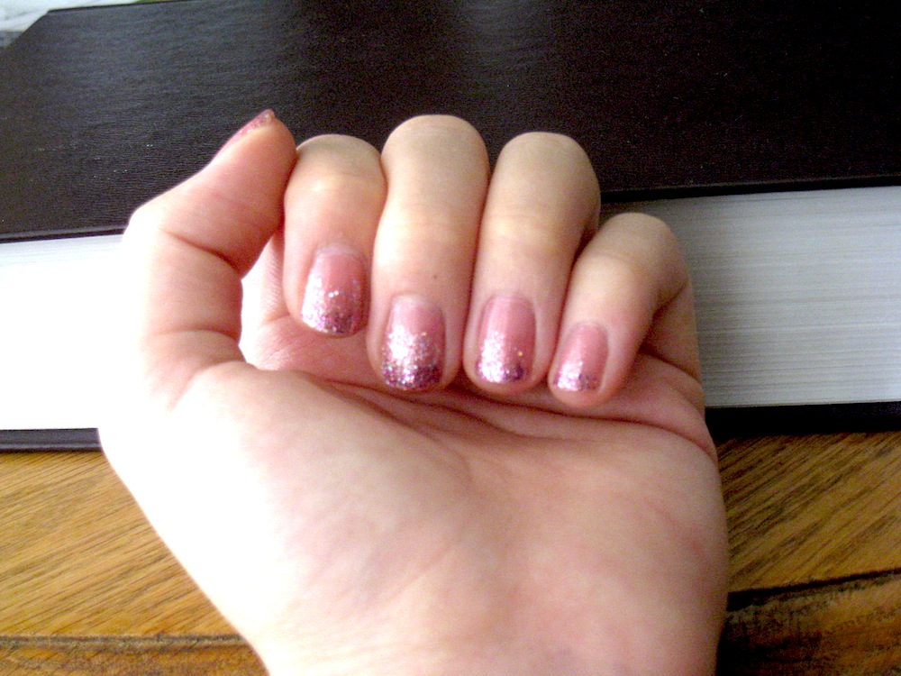 Overall note on glitter nail designs: One of the things that I simultaneously love and hate about glitter polishes is that the glitter is almost impossible to remove without scraping/possibly damaging your nail. While this is definitely a disadvantage when you want to remove it, it's also a huge advantage if you're looking for a design that will last a LONG time. (ie great for long vacations) I tend to put this on when I know I will be away/too busy to take care of my nails for a long time (hey even though they're usually bare for piano I still try to make them presentable!), and I try to let it grow out to the point where after I remove it, I will just clip off most of the damaged tip areas anyway.